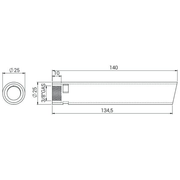 • Ø25mm Ext / ø3/8 inch GAS int.